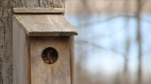 IMG_1215 (1)If you see leaves in the opening of your owl box, remove them — but first, whack the owl box with a broomstick (while standing off to the side) to evict any furry lodgers.