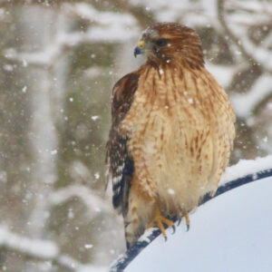 The proud raptor parents (or their cohorts) have nested in Allendale for more than two decades. Red-shouldered Hawks, the more-handsome cousins of Red-tailed Hawk, are considered endangered in New Jersey when nesting. We are lucky to have them in Allendale.